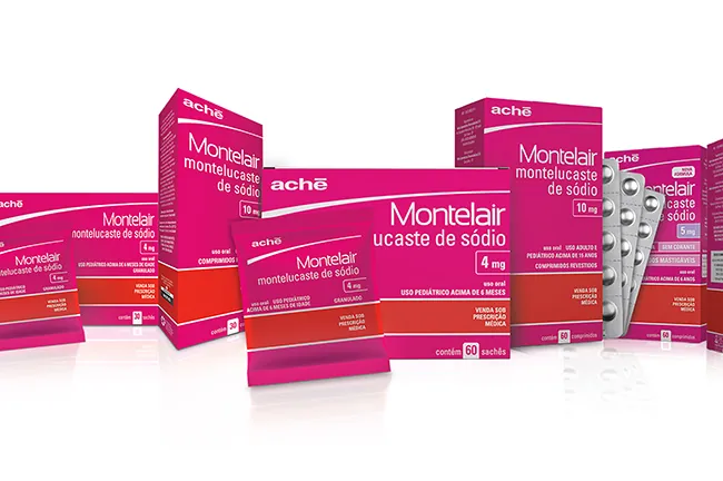 Com foco no cliente e buscando levar conforto a médicos e pacientes, o Aché lança quatro novas apresentações de Montelair (montelucaste de sódio), antileucotrieno indicado para o tratamento coadjuvante da asma, rinite e sintomas oculares. A novidade é o número de unidades na embalagem, que agora conta com 60 comprimidos e permite o tratamento prolongado por dois meses. As demais apresentações com 30 unidades continuarão sendo comercializadas normalmente.