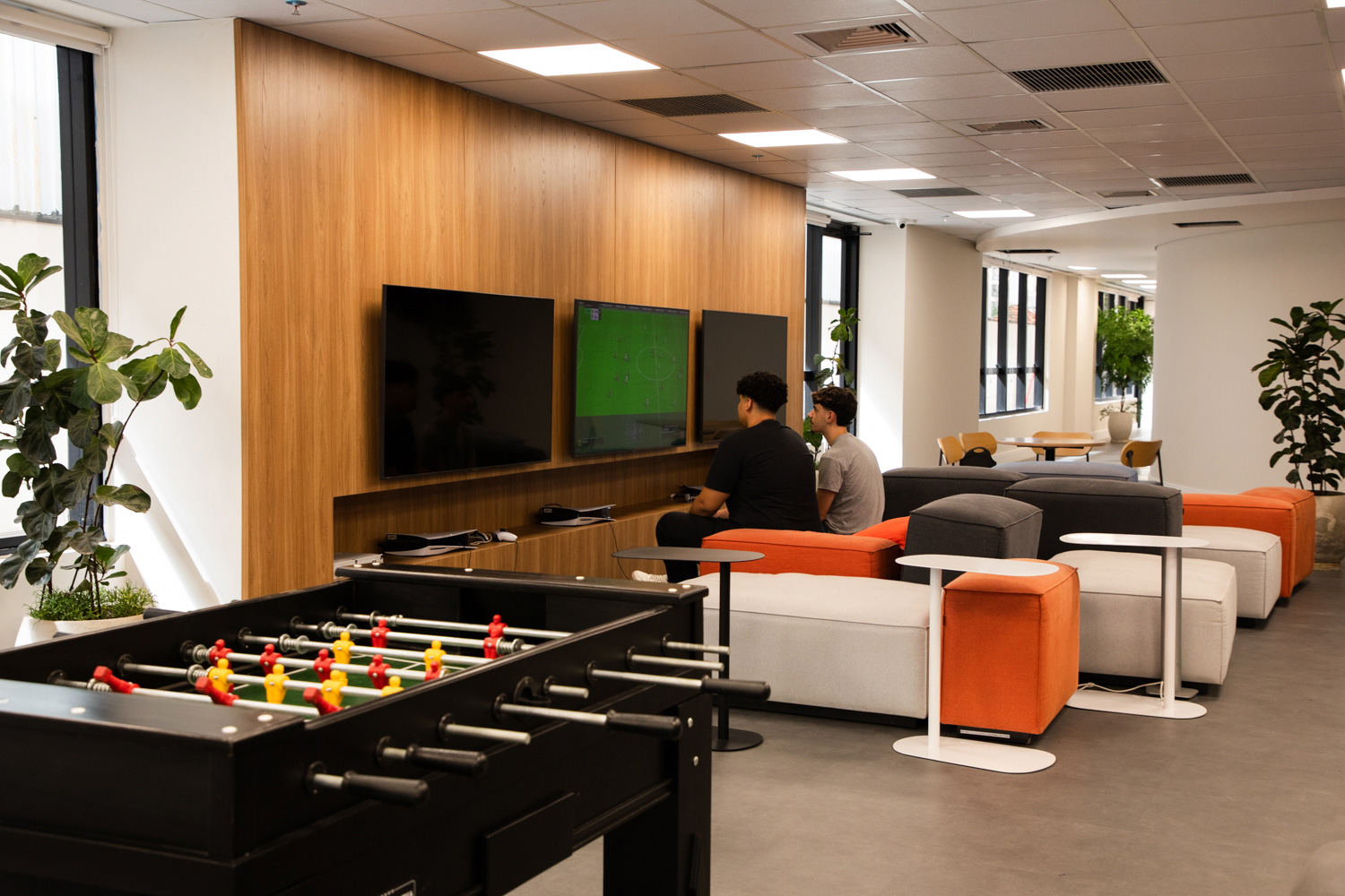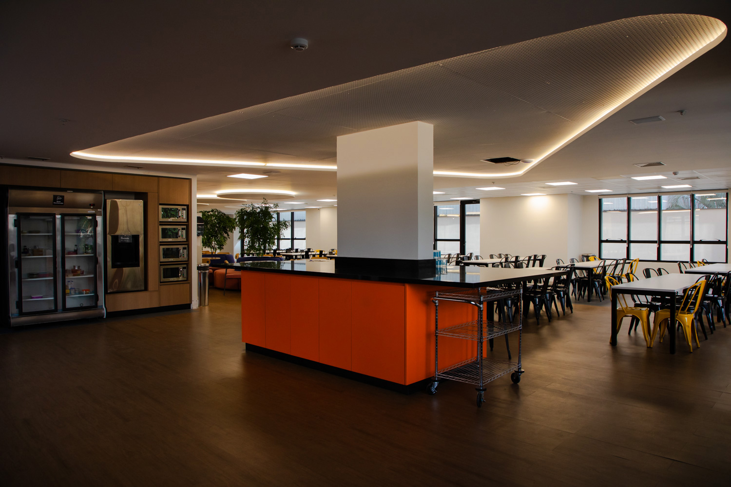 Nossos colaboradores têm à disposição muitos andares de uma estrutura colaborativa: salas de reunião, auditórios, estúdios de gravação, copas, um armário para cada colaborador, área de descanso, mesas de sinuca e pebolim, videogames e cadeiras de massagem.