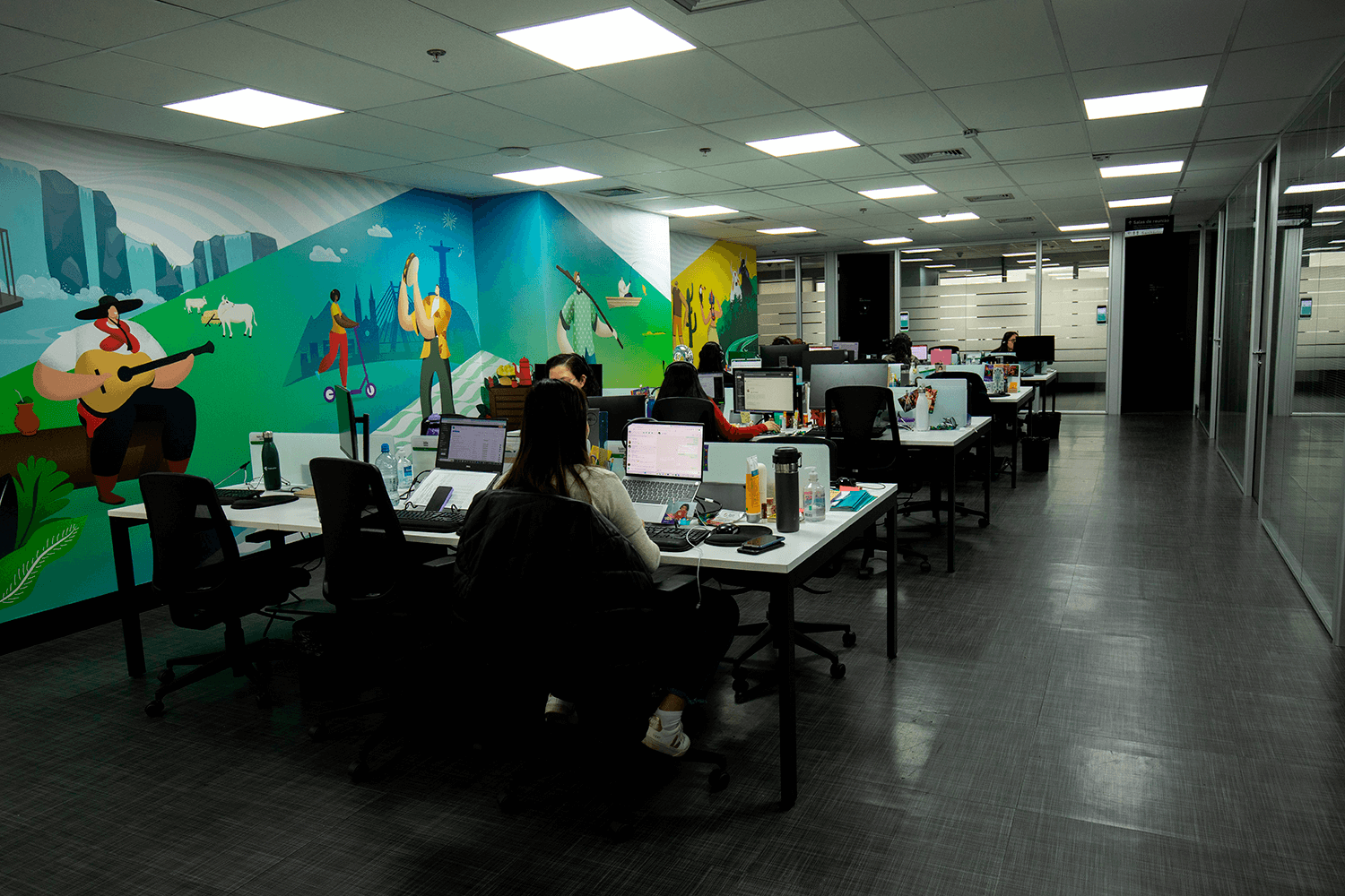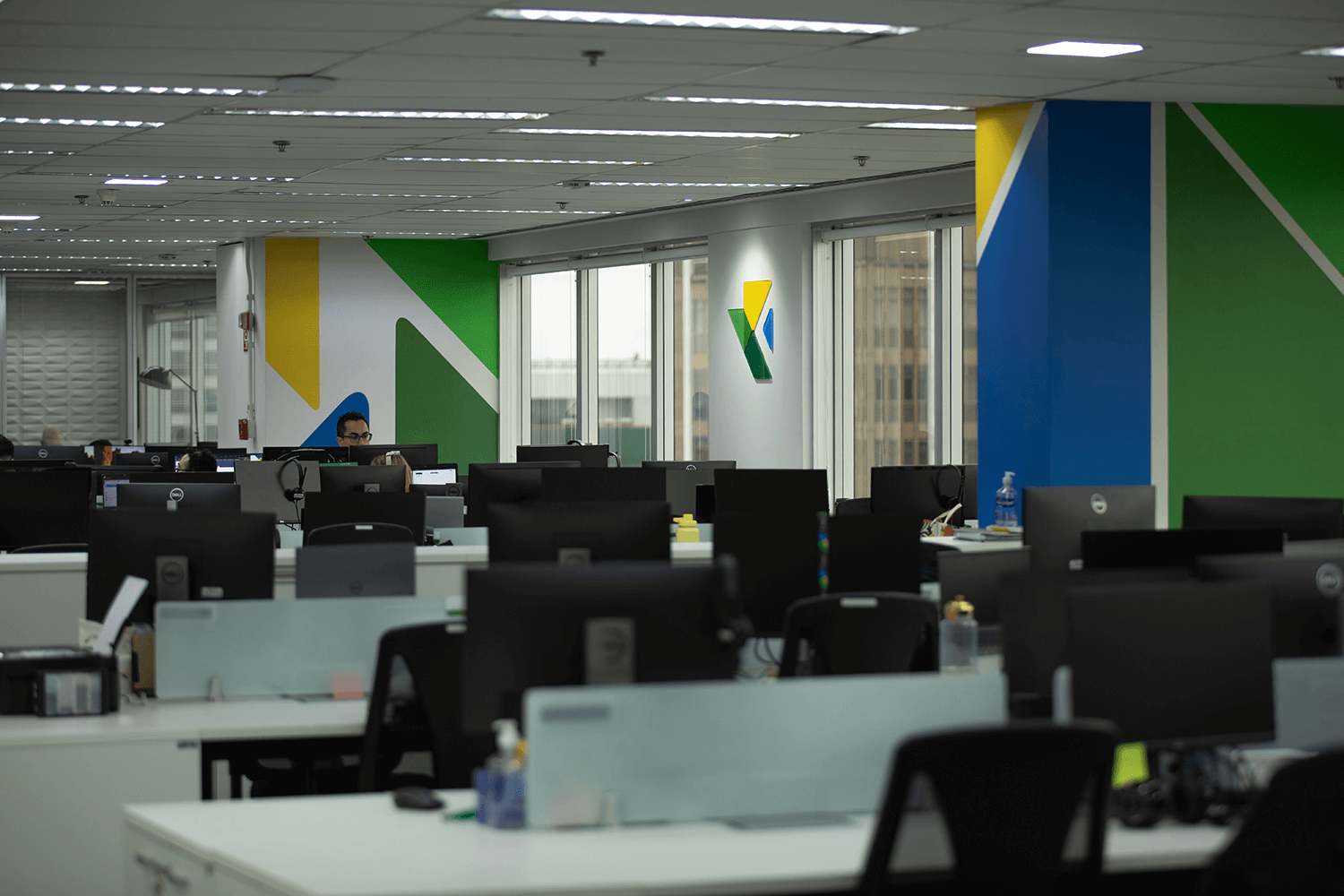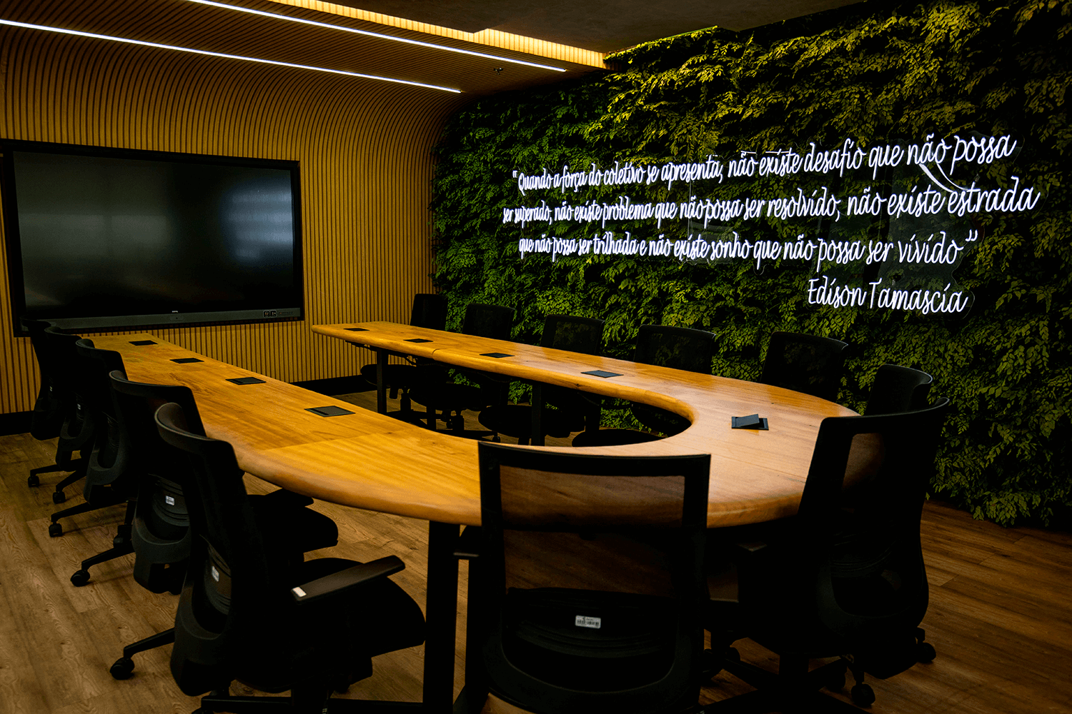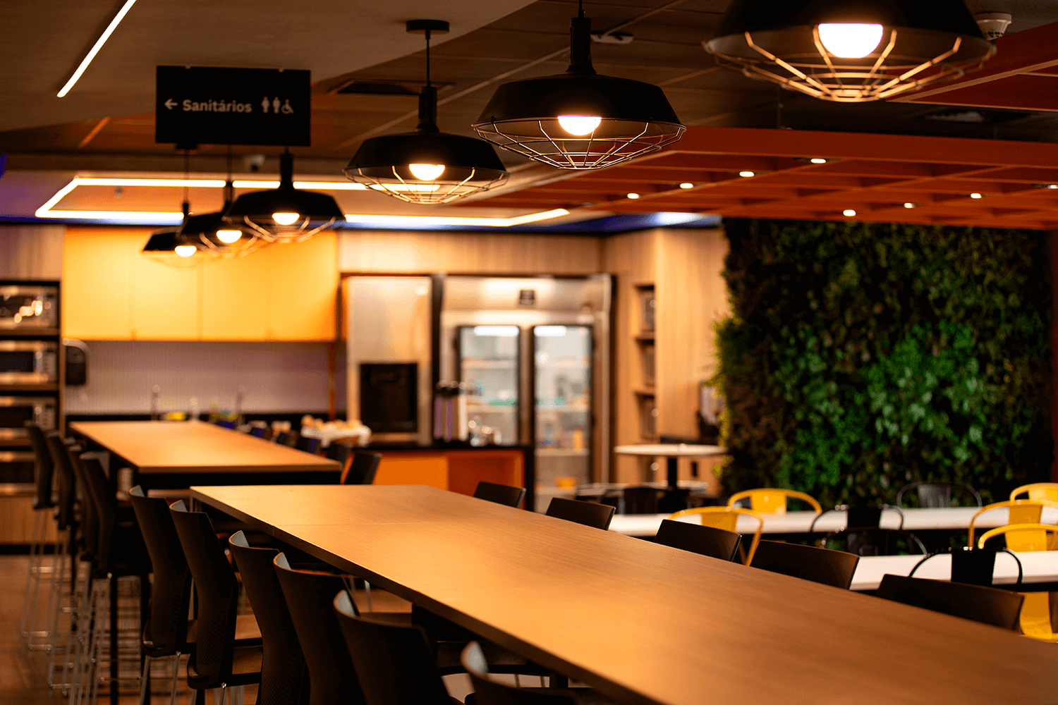 Nossos colaboradores têm à disposição muitos andares de uma estrutura colaborativa: salas de reunião, auditórios, estúdios de gravação, copas, um armário para cada colaborador, área de descanso, mesas de sinuca e pebolim, videogames e cadeiras de massagem.